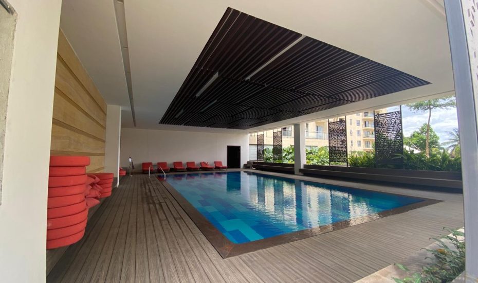 Temperature-controlled indoor pool and grand outdoor swimming pool.